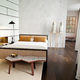 El doble espacio del salón amplía la altura y las vistas de la casa sobre el paisaje colindante. Sirve de perfecto entorno para una escalera de acero empotrada que conecta con la planta superior de las habitaciones. La planta primera recibe los espaciosos dormitorios con su propio vestidor, baño en suite y una terraza con espléndidas vistas al horizonte.