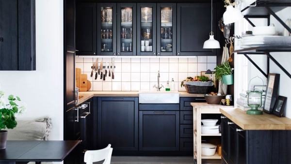 ¿Cocina pequeña en negro? Ufff arriesgado no? Me quedo con la opción de muebles mate, en blanco, y azulejos brillantes, en blanco también.