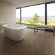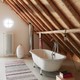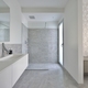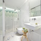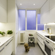 Planta de descanso de la vivienda , donde se aprecia al fondo el ascensor , camuflado en el conjunto de la vivienda, a la izquierda uno de los baños de cortesía, todo en blanco como la mayor parte de la casa.
