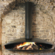 Este sistema es el más antiguo y tradicional; la combustión se produce en un hogar abierto adosado a una pared y suele estar revestido de material refractario para que irradie calor. Puede llegar a ser peligroso si saltan chispas, siendo aconsejable colocar elementos protectores.